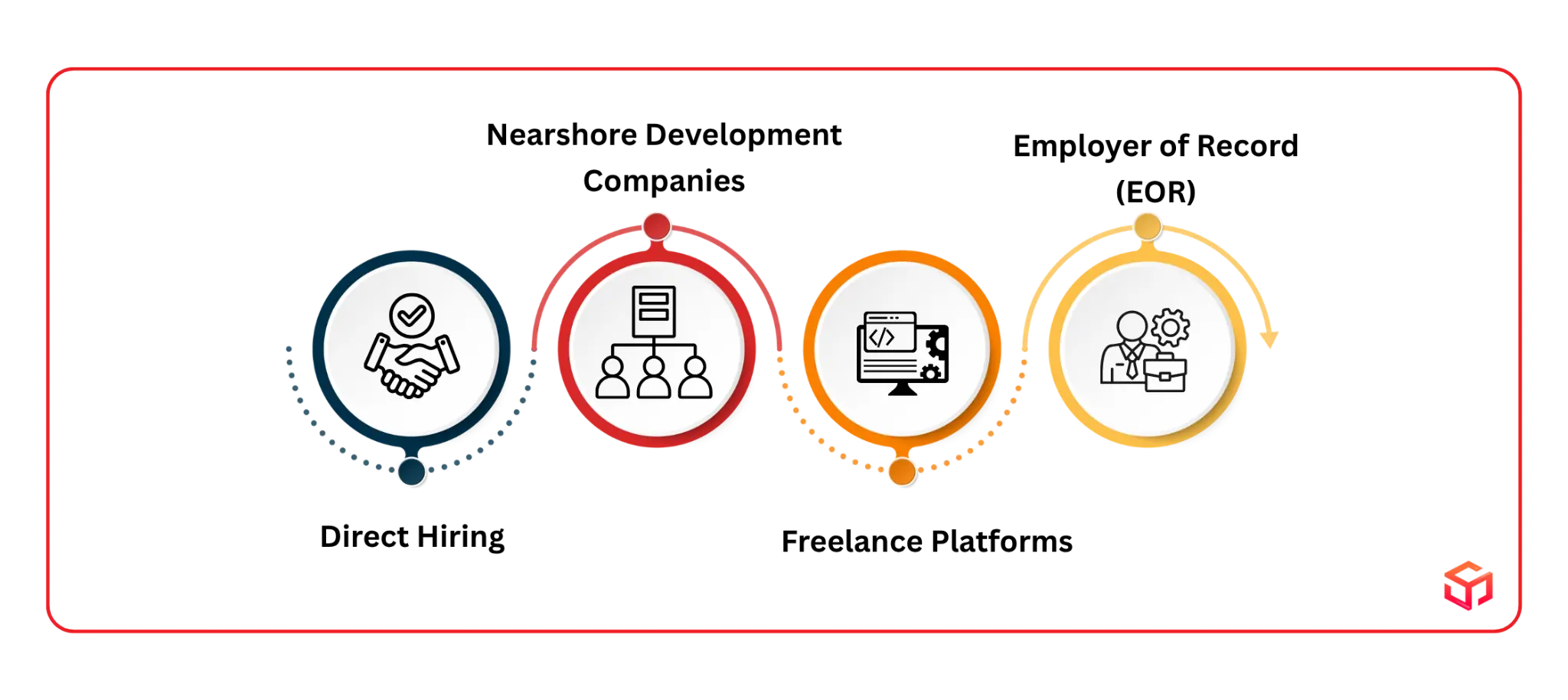 Organizations can access Mexican talent through multiple engagement models. Selecting the right hiring approach determines scalability, compliance risk, and operational control over distributed engineering teams.