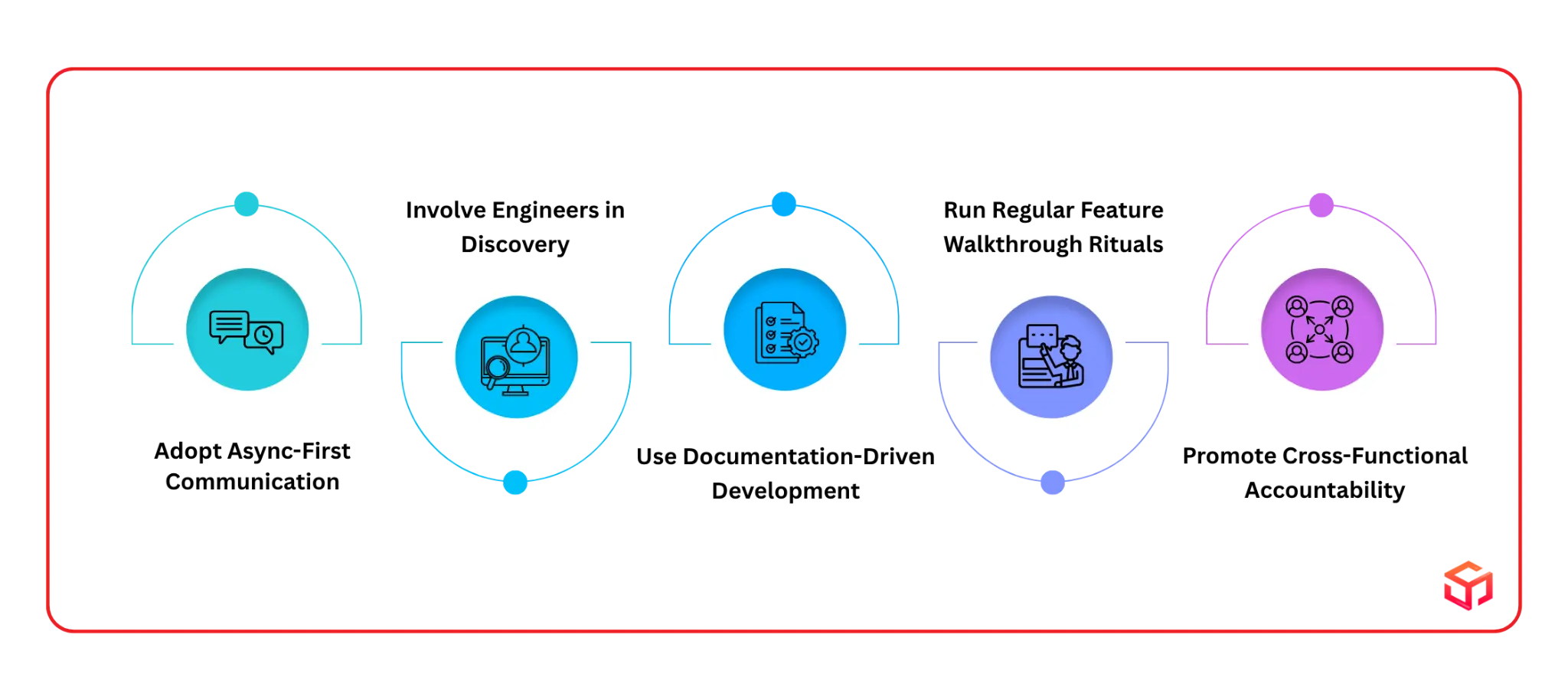 • Involve Engineers in DiscoveryInvite developers into problem exploration phases. Early participation increases ownership and improves solution quality through technical insight.