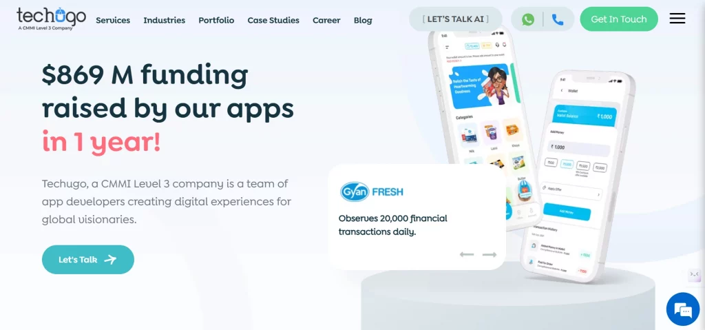 BigOhTech combines strategic design and strong engineering to deliver reliable fintech solutions, making it a top fintech app development company in India​. BigOhTech is known for its fast delivery and customer-centric app design.